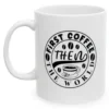 Caffeine + Chuckles: 15oz and 11oz Ceramic White Coffee Mug. Fuel your brain cells and unleash your inner comedian simultaneously.